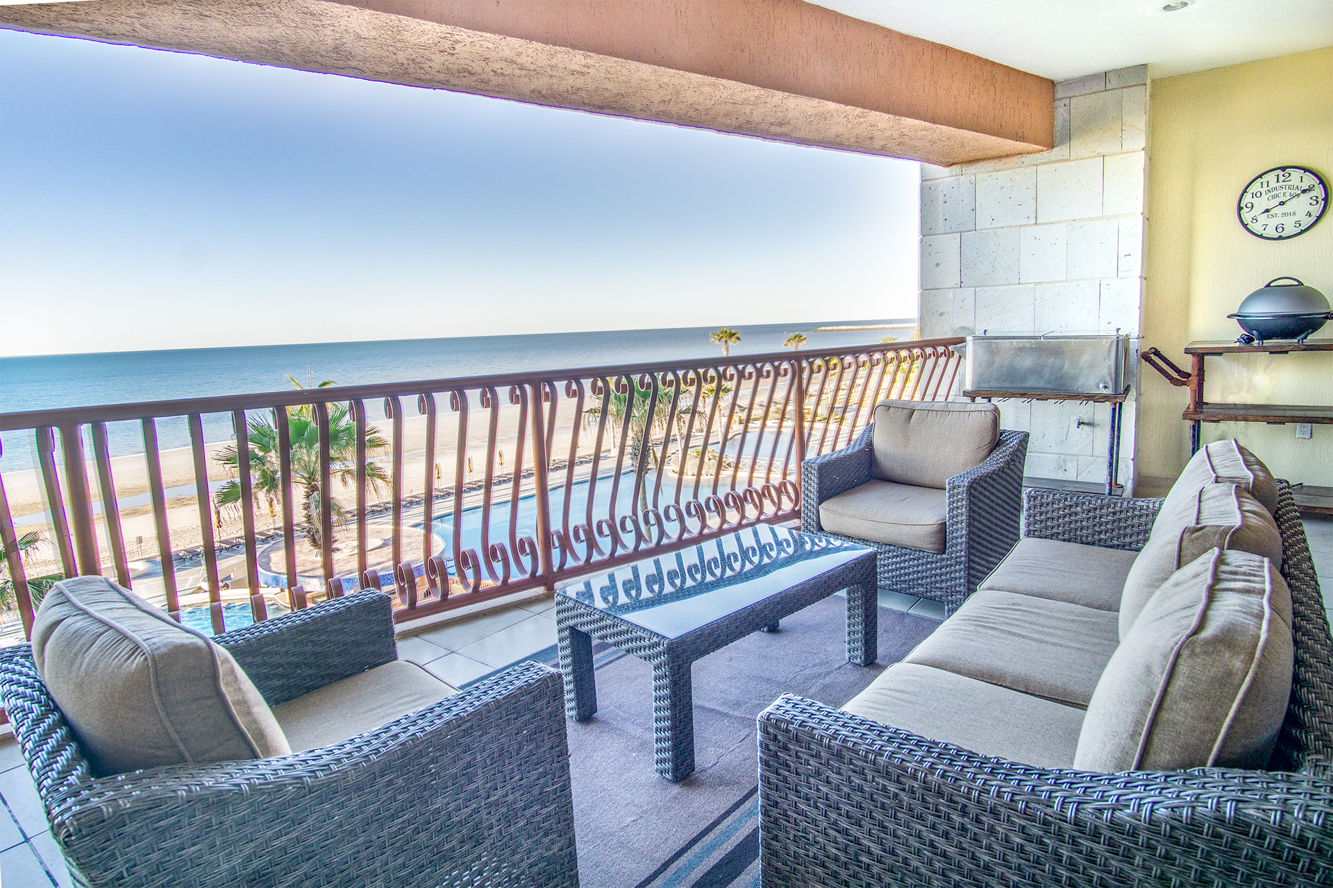 This original and creative condominium resides at the Sonoran Sun Resort in Rocky Point, Mexico. Being at one of the most popular and inviting locations in this coastal town sets this property apart to begin with. The owners, however, have taken things to the next level with their choice of decor and design.